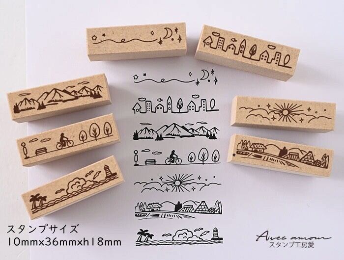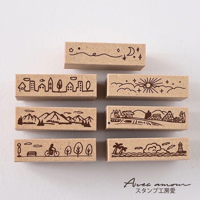 ボーダースタンプ 7本セットー風景/日本製/手帳/コラージュ bor7-01
